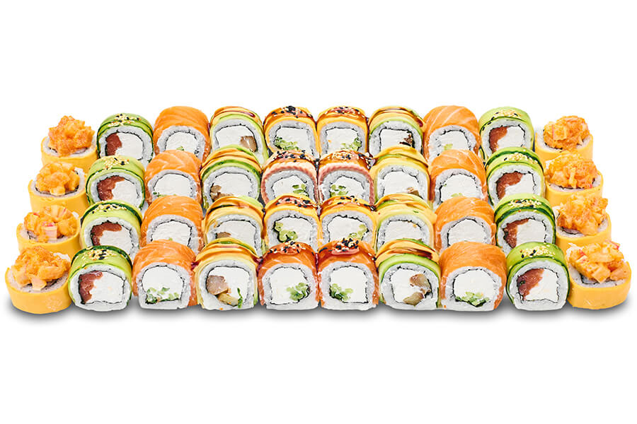 Разнообразие ролла Филадельфия в этом сете поразит ваше воображение! Вы сможете насладиться различными вариациями этого блюда — с авокадо, огурцом, тунцом и другими ингредиентами, которые придают каждому роллу уникальный вкус и текстуру. Вам не придется выбирать только одну определенную версию, ведь в этом сете представлено разнообразие вариантов, чтобы удовлетворить любой вкус!